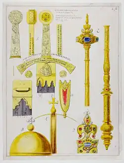 D'après un inventaire du Trésor d'État réalisé au Wawel en 1633 par Jerzy Ossoliński, Grand Chancelier de la Couronne, les regalia de la Couronne polono-lituanienne regroupaient: