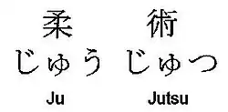 Le terme jūjutsu transcrivant de façon plus rigoureuse le mot japonais pour cet art martial est composé de deux kanjis. Selon la méthode de romanisation du japonais la plus répandue, la méthode Hepburn, ces kanjis devraient se définir ainsi :