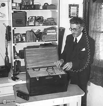 - « En 1926, tout en travaillant en Bolivie en recherche de minéraux et en utilisant un appareil de mon invention, je remarquai quelque chose de curieux. À chaque fois que je connectais le mécanisme et le mettais en marche, la pluie m’empêchait de travailler sur le lieu en question. Je fus frappé par ce phénomène qui se répétait puis j'estimai que cette pluie pouvait être causée par la congestion d'irradiation électromagnétique dans l'atmosphère produite par ma machine. »