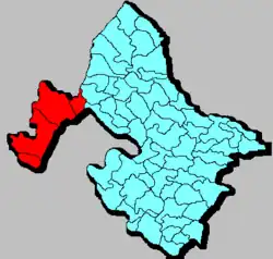 Le județ de Meredinți compte deux municipalités, trois villes et 61 communes.