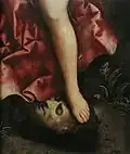 Cette jambe découverte, massive et nue, met en évidence la séduction déployée par Judith à l'égard d'Holopherne afin de rendre possible son meurtre[6].