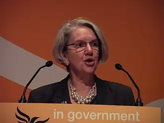 Le 12 octobre 2017, elle devient porte-parole des Libéraux-démocrates à la Chambre des Lords et démissionne en janvier 2020.