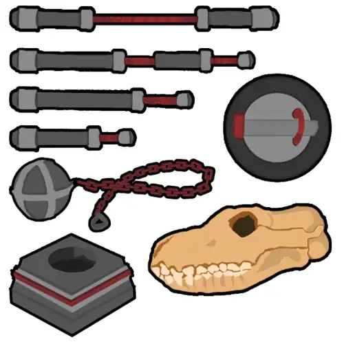 - Le crâne (allemand : jugg dans la tradition berlinoise, schädel dans la tradition d'Hamburg[11]) : une balle en mousse et non un vrai crâne de chien comme dans le film The Blood of Heroes. En Allemagne et en Irlande, il s'agit un crâne de chien en mousse cellulaire ou latex ; il existe également des crânes de compétition non sculptés, en forme de cône ou de cylindre ;