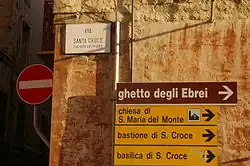 Les nombreuses via ghetto rappellent l'institution typiquement italienne du ghetto, plus stricte que la giudecca. La résidence des Juifs y était obligatoire, et le ghetto muré, ses portes ne s'ouvrant que la journée. Le premier ghetto a été institué à Venise en 1516. D'autres ont suivi, notamment à Rome et dans les États pontificaux.