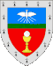 Coupé : au 1 d'azur à l'Esprit-Saint s'essorant sur une mer de sinople, au 2 de gueules au calice d'or à l'hostie issante d'argent, à la bordure d'hermines. L'écu est surmonté de la croix, de la mitre et de la crosse[7].