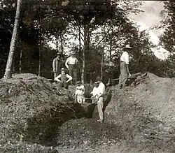- 1907 : fouille du tumulus de l'âge du Fer de la Garenne à Liverdun (Meurthe-et-Moselle)[25],[26].