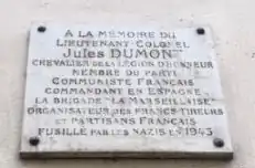 - 1 2 3 4 Jean Maitron, Claude Pennetier, « DUMONT Jules, Joseph. Dit colonel DUMONT », sur fusilles-40-44.maitron.fr.