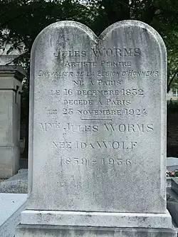Jules Worms est enterré à Paris au cimetière du Montparnasse (section 5).
