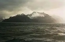 Crozet lors de cette prise de possession où selon la coutume il enferme l'acte dans une bouteille déposée au sommet d'une pyramide de pierres écrit : L'endroit où je débarquai était absolument pierreux. Je montai sur une éminence d'où j'aperçus de la neige qui s'étendait dans plusieurs vallées ; la terre semblait aride et était couverte d'une petite herbe fine...[19] Il y découvre une immense colonie d'éléphants de mer, manchots, pétrels et cormorans.