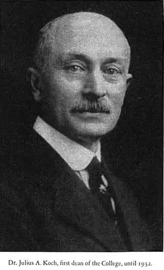 Julius Arnold Koch (, Brême – , Pittsburgh) est une chimiste germano-américain. Koch étudie la chimie à l'université de Munich, l'université de Heidelberg, et à l'université de Pittsburgh dont il sort diplômé en 1884 ; il devient à sa création le premier doyen (dean) de l'école de pharmacie de l'université de Pittsburgh (en), position qu'il conservera jusqu'à sa retraite en 1932. En 1897, lors d'un séjour en Allemagne, il découvre avec l'allemand Ludwig Gattermann la réaction de Gattermann-Koch, une variante de la réaction de Gattermann, une méthode permettant de synthétiser le benzaldéhyde à partir du monoxyde de carbone[1].