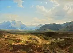 Ses paysages, représentant pour la plupart des motifs des montagnes de la Haute Bavière et du Tyrol, se distinguent par la fraîcheur de leur vision, un sens de la couleur purifié et une technique répondant aux exigences modernes[3]. Un exemple caractéristique de son art est le paysage de montagne bavarois de 1864, vue de Brannenburg sur le Heuberg, qui se trouve à la Nationalgalerie de Berlin[3]. Le musée de Hanovre conserve de lui Le lac Kochef[2].