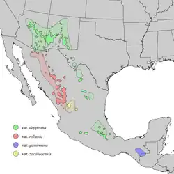 - Juniperus deppeana var. robusta est présent dans les États mexicains de Sonora, Chihuahua, Durango et Zacatecas. Cette variété mesure entre 10 et 25 m de haut et l'écorce entre 2 et 4 cm d'épaisseur.