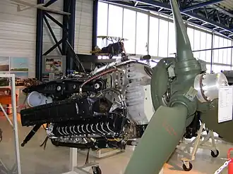 - Type : Moteur d'aviation 12 cylindres inversés compressé à refroidissement liquide