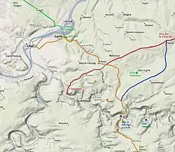 - ↑ La voie des hêvurlins, les marchands de Herve vient s'y greffer en suivant une crête du ban d'Olne.