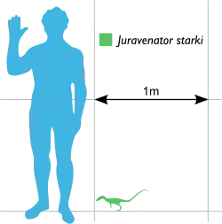 Ce genre ne comprend qu'une seule espèce, Juravenator starki, connue par un seul spécimen juvénile, d'une taille d'environ 75 cm, découvert à Schamhaupten (d) dans le Sud de l'Allemagne. Il possédait des écailles très sensibles le long de sa queue. Ces écailles sensorielles se retrouvent encore aujourd’hui chez les crocodiles, leur permettant ainsi de sentir le mouvement de leurs proies et de les détecter plus facilement dans l’eau trouble. Cette adaptation peut paraître étrange pour un dinosaure mais les scientifiques qui l’ont étudié pensent qu’il était piscivore, d’après la forme de ses dents. Il devait donc utiliser ses écailles d’une façon similaire aux crocodiles actuels[1],[2],[3].