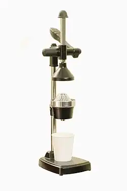 Dans la première méthode, deux tasses métalliques avec des tubes métalliques pointus sur la coupe inférieure se rejoignent, retirant la peau et forçant la chair du fruit à travers le tube métallique. Le jus du fruit s'échappe alors par de petits trous dans le tube. Les pelures peuvent ensuite être réutilisées et sont lavées pour éliminer les huiles, qui sont récupérées pour être réutilisées plus tard. La deuxième méthode nécessite que les fruits soient coupés en deux avant d'être soumis à des alésoirs, qui en extraient le jus[7].
