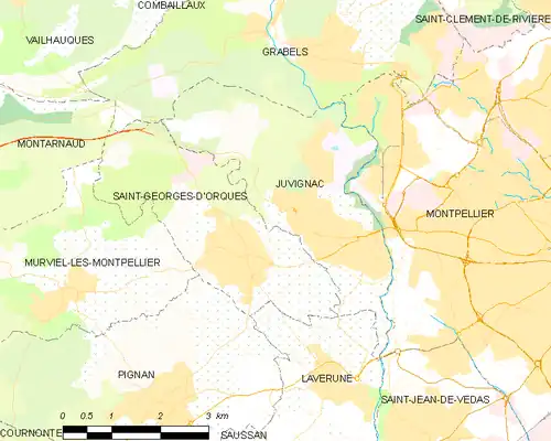 Juvignac[ʒy.vi.ɲak] (en occitan Juvinhac[d͡ʒy.βi.'ɲak]) est une commune française située dans l'est du département de l'Hérault en régionOccitanie, à l’ouest de Montpellier. Ses habitants sont appelés les Juvignacois. Juvignac est avant tout connue pour son golf (golf de Juvignac-Fontcaude), ses thermes du XIXesiècle (et son Vichy Spa) et ses garrigues. Juvignac est officiellement créée en 1790 mais son histoire est bien plus ancienne.