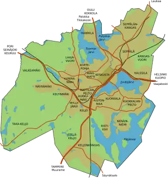 | 07 | Keljo | Tarhamäki, Etelä-Keljo, Keljonkangas, Sääksvuori | |