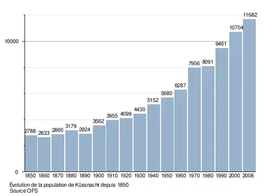 Le graphique suivant résume l'évolution de la population de Küssnacht entre 1850 et 2008[3] :