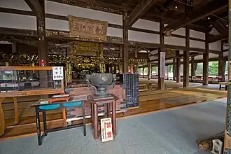 L'énorme hon-dō (porte principale) est un bien culturel important du Japon[8]. À sa gauche se trouvent le kaisan-dō et le shoin (salle d'études). Entre eux, l'étang au lotus du temple a été construit au début du XVIIe siècle.