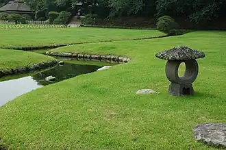- Lac Kayo-no-ike (花葉の池) : à l'est du lac se trouvent les chutes Kayo-no-taki. Sur la rive sud-ouest se trouve Odateishi, un rocher qui aurait été cassé en quatre-vingt-dix fragments, amené à Kōrakuen, et reconstruit sur place pendant l'ère Genroku. Des lotus daimyo[Quoi ?] fleurissent à proximité en juillet-août.