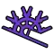 Connecteur violet | Il comporte quatre pinces, pas de trou, mais associé à lui-même ou à un connecteur bleu, il permet de créer des arêtes ou des coins (existe aussi en gris). |