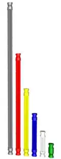 Elles ont rapports entre les tailles de quand on les utilise conjointement avec les connecteurs. Les couleurs peuvent varier avec les sets de couleurs, mais ce sont ici les couleurs de base. Les longueurs sont exprimées par le nombre de connecteur pouvant être fixés côte à côte sur chaque tige, en utilisant la méthode Pince-Barre.