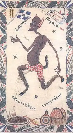Un kallikantzaros est un gobelin ou un lutin malveillant issu du folklore balkanique, chypriote et turc. Il vit habituellement sous terre mais sort à la surface du 25 décembre au 6 janvier, soit au solstice d'hiver et pour la quinzaine de jours où le soleil cesse ses mouvements saisonniers.