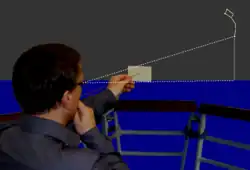 où est la distance de l'objet, est la taille de l'objet observé, est la distance entre le kamal et l’œil de l'observateur, et est la taille apparente de l'objet observé.