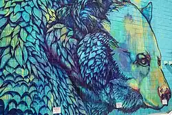 ![]() ![]() ![]() ![]() ![]() De haut en bas et de gauche à droite : Vue du centre-ville depuis le parc Kenna Cartwright, l'ancien palais de justice du West End, le Chemin de fer patrimonial de Kamloops, l'art de rue sur la rue Seymour, et l'Université Thompson Rivers. |
