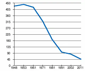 | 429 | 440 | 423 | 321 | 188 | 98 | 83[2] | 47[1] |