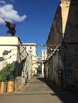Cinéma et centre culturel. Un pavillon en bois a d'abord été construit en cet endroit en 1949. Il a été incendié au cours de l'insurrection de juin 1953 puis reconstruit en dur pour devenir le siège du Front national de la République démocratique allemande. Il sert depuis 1982 de cinéma, de théâtre, de salle de concert et de conférence. C'est là que le groupe Rammstein a fait son premier concert en public le . Le naTo est le siège de l'association Kultur- und Kommunikationszentrum naTo e.V. qui en plus de gérer le centre, organise des événements festifs à Leipzig durant l'été, comme le prix de tacot (une course de caisses à savon organisé sur le Fockeberg) ou les régates de baquet (course de baignoires sur le plan d'eau du Monument de la Bataille des Nations). - N° 145 : Le siège de l'Université des sciences appliquées de Leipzig (Hochschule für Technik, Wirtschaft und Kultur Leipzig — HTWK) construite par l'architecte Albert Geudebrück.