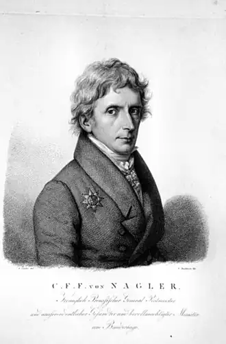 - (de) Cet article est partiellement ou en totalité issu de l’article de Wikipédia en allemand intitulé « Karl Ferdinand Friedrich von Nagler » (voir la liste des auteurs).