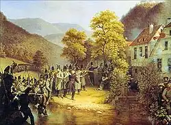 En , l'Autriche rouvre les hostilités contre la France lors de la guerre de la Cinquième Coalition en espérant entraîner toute l'Allemagne dans une guerre de libération. Les corps francs commandés par Wilhelm von Dörnberg, dont celui de Friedrich von Katte (de) et celui des frères von Hirschfeld, doivent s'emparer par surprise de la forteresse de Magdebourg tandis que l'armée autrichienne de l'archiduc Charles avance en Allemagne du Sud. Le coup de main sur Magdebourg, découvert trop tôt, échoue et les corps francs se dispersent. Les frères von Hirschfeld se réfugient au château d'Eichenbarleben où leur parente, Minettchen von Alvensleben (1777-1852), les aide à échapper aux recherches.