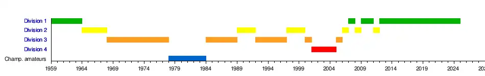 Après une relégation en D2 à l'issue de la saison 1944-1945, le club se retrouve en D1 après une excellente année lors de la saison en 1945-1946.