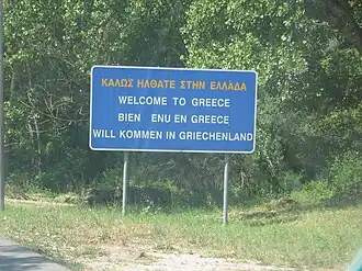 Panneau d'accueil en Grèce.