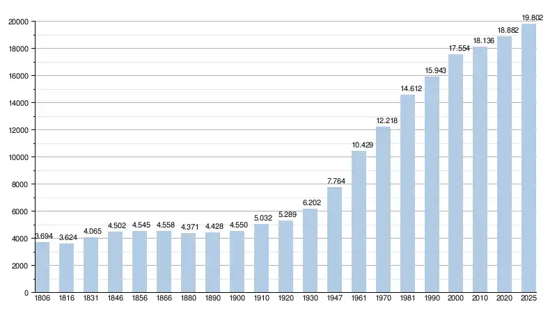 - Source : DGS - Remarque: 1806 jusqu'à 1981=recensement; depuis 1990=nombre d'habitants chaque 1er janvier[6]