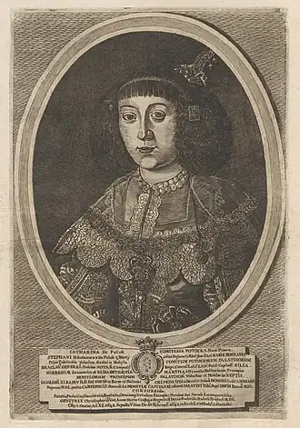 En 1638, Catherine épouse Janusz Radziwiłł, grand hetman de Lituanie, duc de Samogitie, voïvode de Vilnius (lt), grand chambellan de Lituanie (lt), seigneur de Kamenec, Kazimieras et Seivai (pl).