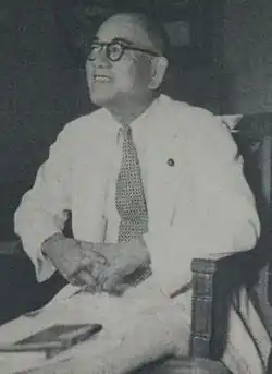 Katsuo Okazaki (岡崎 勝男, Okazaki Katsuo) est un diplomate, politicien et athlète japonais. Il est notamment le dernier président du conseil de la Concession de Shanghai après le retrait des britanniques et des américains pendant la seconde Guerre mondiale[1]. Ministre des affaires étrangères du Japon entre 1952 et 1954, il a contribué au rétablissement de la coopération entre le Japon et les États-Unis après la Guerre.