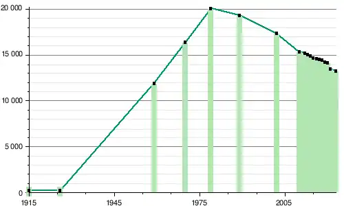 La commune a connu une forte croissance démographique entre 1926 et 1989, passant de 245 habitants à 19 336 habitants. Mais depuis, la population est en constante baisse, avec selon les estimations de 2023 plus que 13 262 habitants.