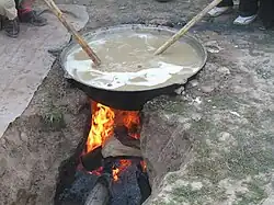 Boortsog frit dans un kazan.