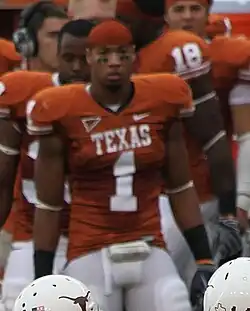 Plusieurs offres de bourse d'études lui parviennent d'équipes NCAA (entre autres des Cowboys d'Oklahoma State et des Aggies du Texas), et il choisit d'intégrer l'Université du Texas et jouer pour les Longhorns[5].