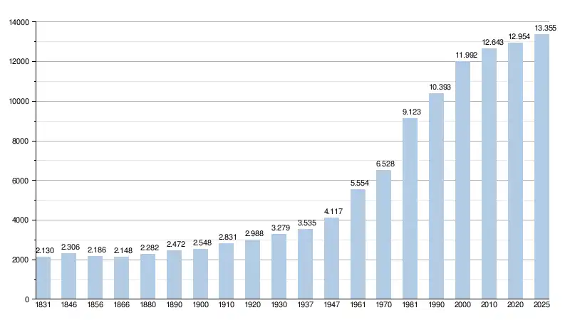- Source: DGS , de 1831 à 1981=recensements population; à partir de 1990 = nombre d'habitants chaque 1 janvier[2]