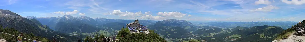 La Kehlsteinhaus et, en arrière-plan, les Alpes bavaroises. | |