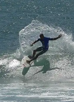 Kelly Slater (né Robert Kelly Slater le à Cocoa Beach en Floride) est un surfeur professionnel américain. Il est considéré comme le meilleur surfeur de tous les temps.Il détient onze titres de champion du monde de surf, remporte à 50 ans et pour la 8e fois le Billabong Pro Pipeline (Billabong Pipe Masters) trente ans après sa première victoire et plus de cinquante victoires sur le circuit d'élite WCT ce qui constitue un record[1].