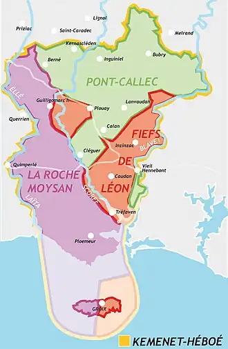 - ↑ Philippe Jouët et Kilian Delorme, Atlas historique des pays et terroirs de Bretagne : histoire, ethnographie et linguistique, Morlaix, Skol Vreizh, , 159 p. (ISBN 978-2-915623-28-4)