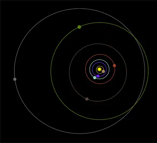 Eeloo, une planète naine couverte de glace qui fait référence à Pluton par son orbite excentrique et fortement inclinée par rapport au plan de l'écliptique.