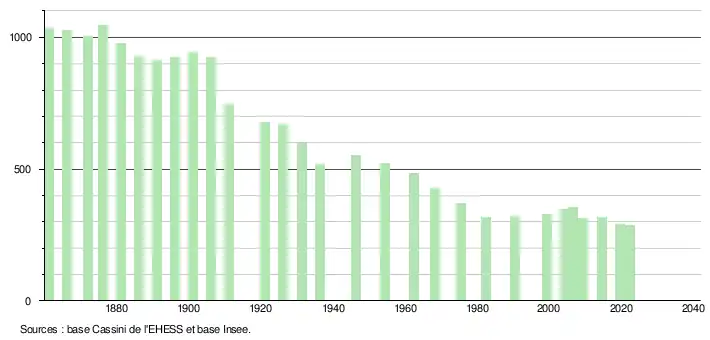 - ↑ Fiches Insee - Populations de référence de la commune pour les années 2006, 2007, 2008, 2009, 2010, 2011, 2012, 2013, 2014, 2015, 2016, 2017, 2018, 2019, 2020, 2021 et 2022.