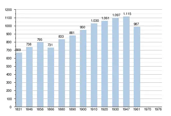 - Sources : INS, Rem. : 1831 jusqu'en 1970 = recensements, 1976 = nombre d'habitants au 31 décembre.