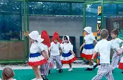 En France, depuis plusieurs générations[1], c'est généralement en fin d'année scolaire que les écoles clôturent le cycle éducatif annuel par une kermesse, fête qui fait participer les élèves, les professeurs, les parents volontaires, des élèves de l'établissement, l'association des parents d'élèves[2] ou caisse des écoles[3],[4]. Les dates définies dépendent généralement des évènements de la commune ou de l'actualité comme les Jeux olympiques d'été de 2024. La représentation se faisant en spectacle regroupant plusieurs écoles ou organisé individuellement par établissement scolaire, avec la mixité des enfants[5] ou garçons et filles séparés selon l'époque où les écoles. C'est aussi l'occasion de lier des liens entre enseignants, enfants et parents[6].